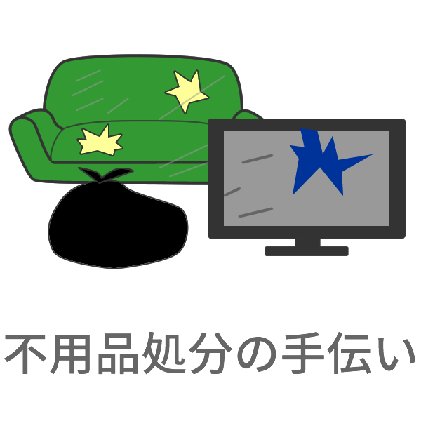 家庭でいらなくなった不用品 どう処分していいか分からない物 重たくて片づけるのに困っている物 その他の家具処分 ゴミ屋敷の片付け 廃屋・空き家の片付け 軽度のお引っ越し 亡くなった方の荷物の片付け(遺品整理)